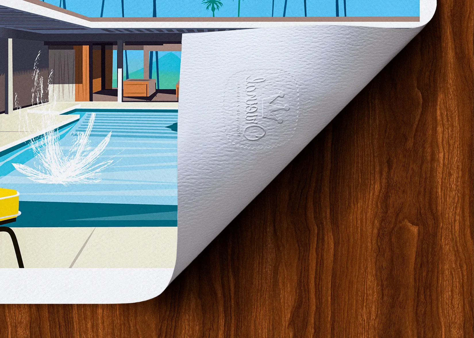 Un gaufrage discret, apposé directement sur le papier, certifie l’origine et la qualité du tirage. Ce sceau inaltérable est une marque d’authenticité.