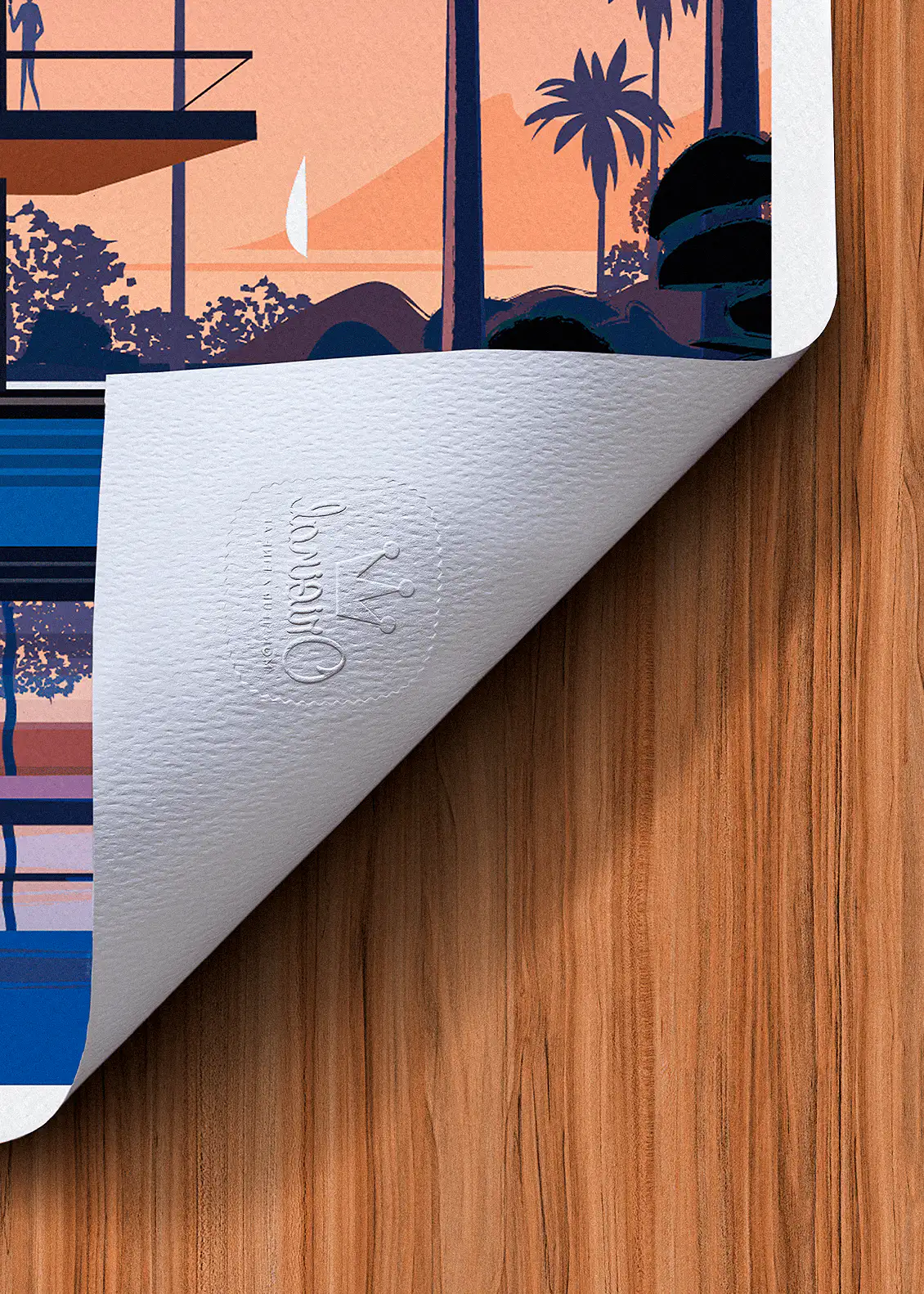 Un gaufrage discret, apposé directement sur le papier, certifie l’origine et la qualité du tirage. Ce sceau inaltérable est une marque d’authenticité.