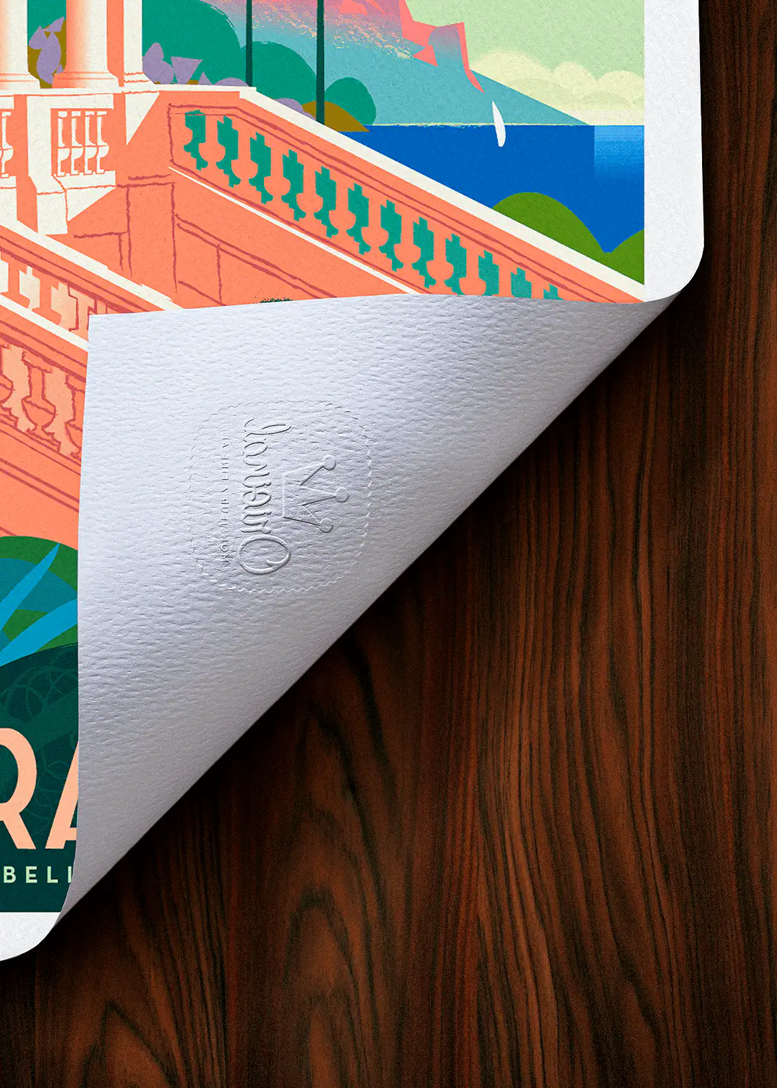 Un gaufrage discret, apposé directement sur le papier, certifie l’origine et la qualité du tirage. Ce sceau inaltérable est une marque d’authenticité.