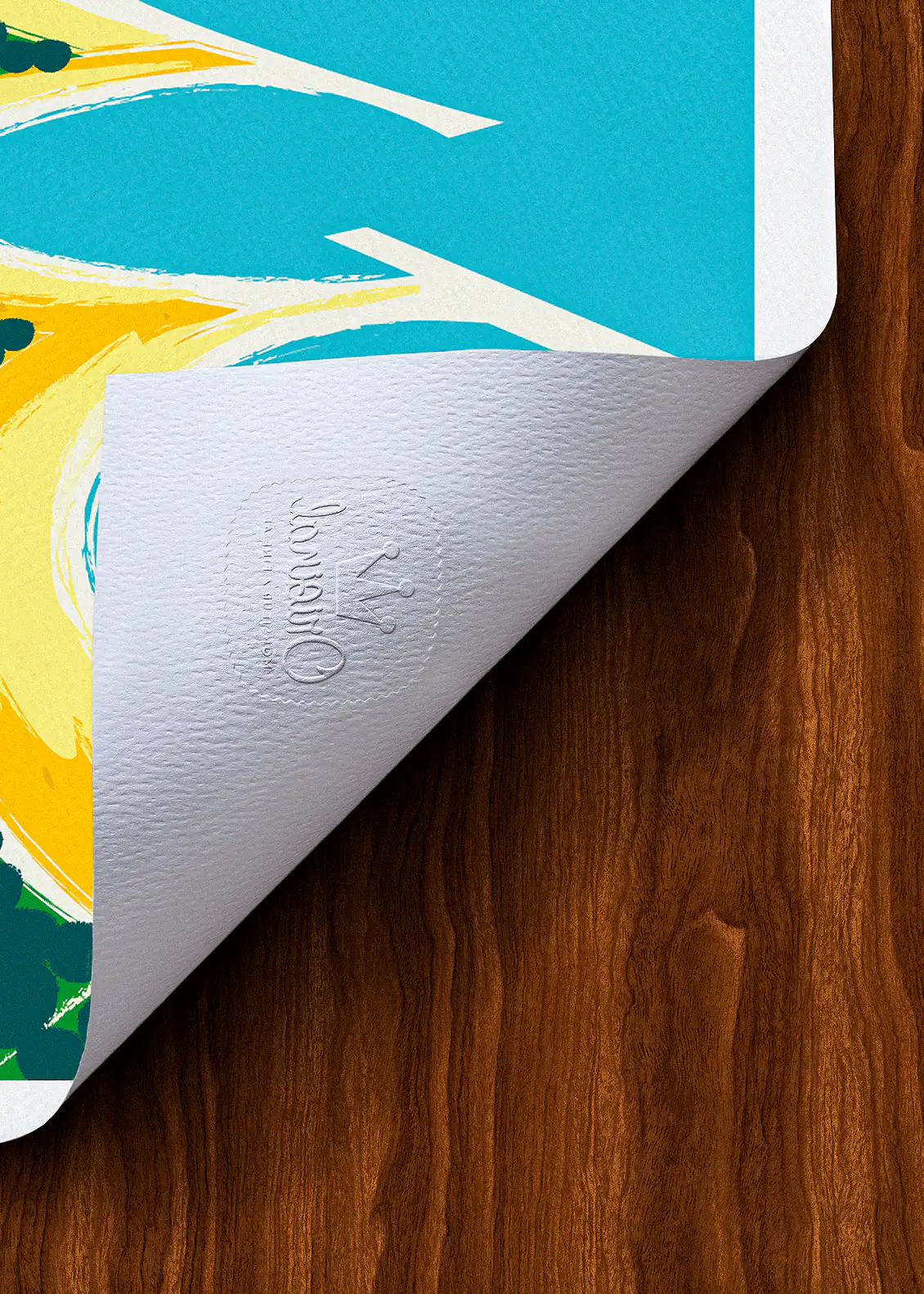 Un gaufrage discret, apposé directement sur le papier, certifie l’origine et la qualité du tirage. Ce sceau inaltérable est une marque d’authenticité.