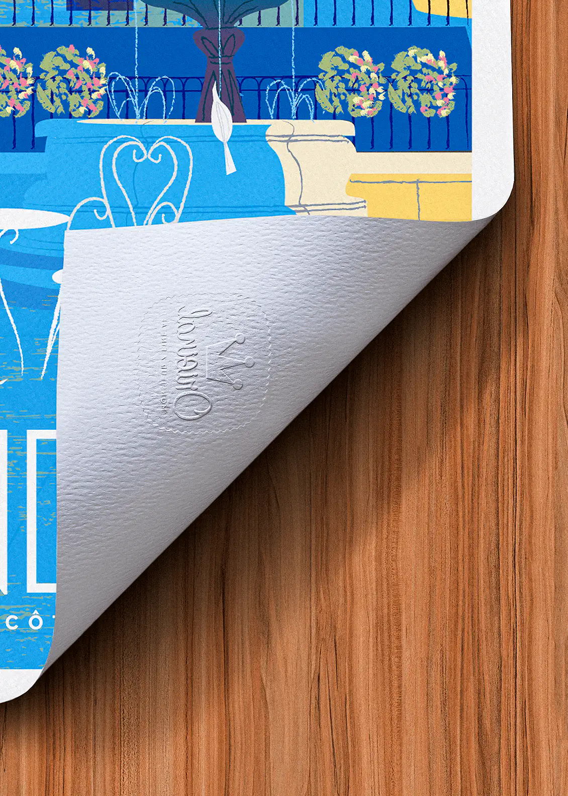 Un gaufrage discret, apposé directement sur le papier, certifie l’origine et la qualité du tirage. Ce sceau inaltérable est une marque d’authenticité.