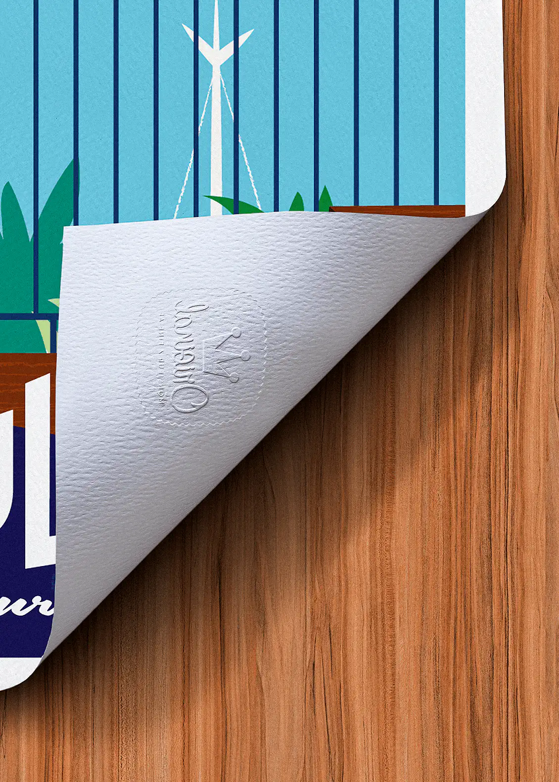 Un gaufrage discret, apposé directement sur le papier, certifie l’origine et la qualité du tirage. Ce sceau inaltérable est une marque d’authenticité.