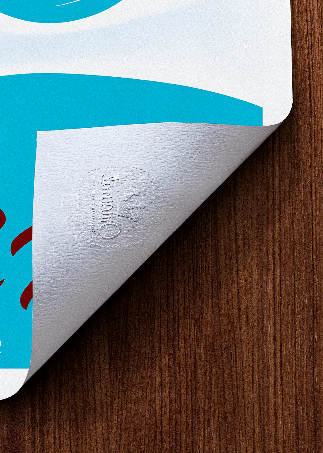Un gaufrage discret, apposé directement sur le papier, certifie l’origine et la qualité du tirage. Ce sceau inaltérable est une marque d’authenticité.